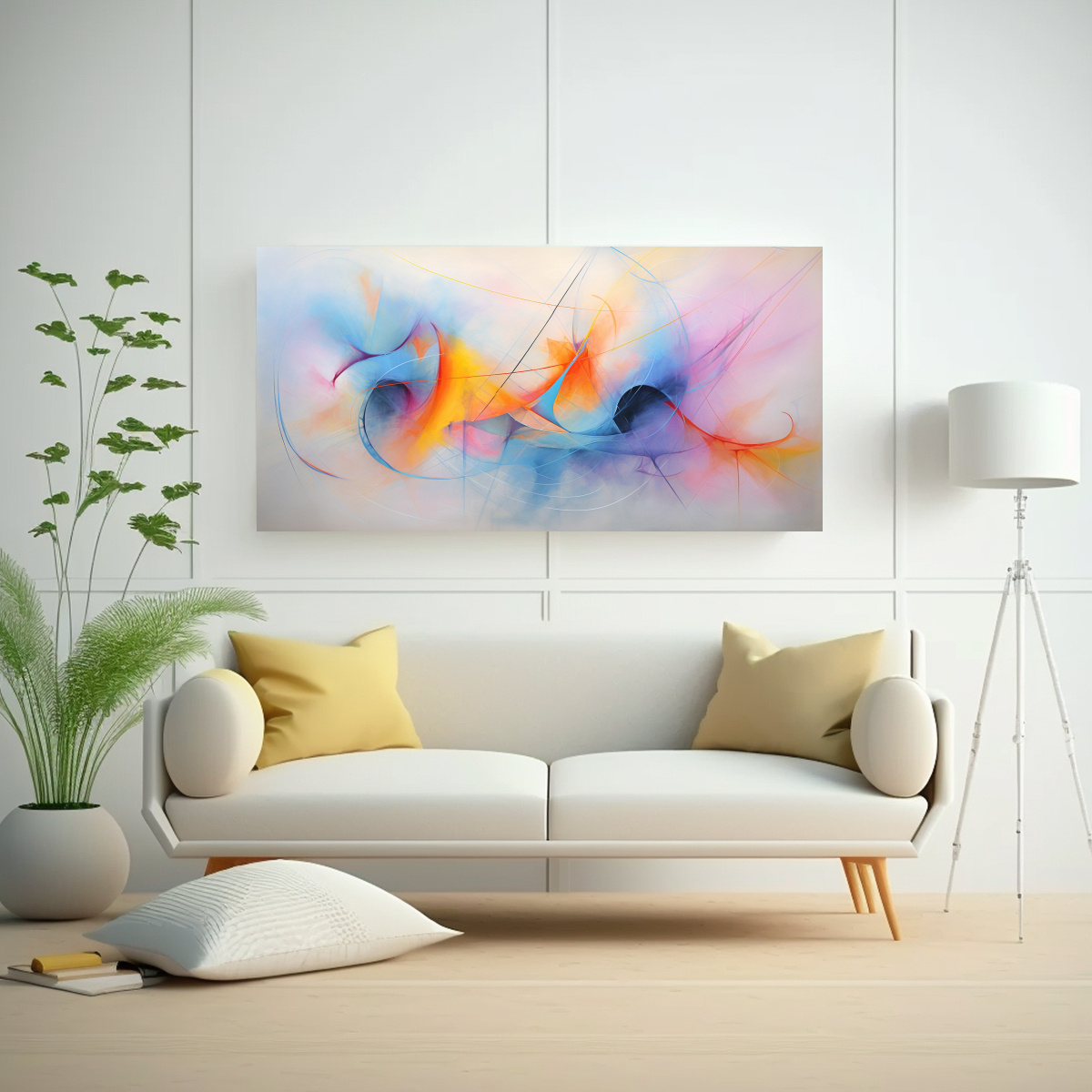 Este cuadro abstracto tonos pastel – Vanguardia es ideal para colocar en el salón junto a un sofá gris o una pared de tono beige Su combinación de colores cálidos y su estilo vanguardista agregarán un toque de elegancia y modernidad a tu espacio Además, su tamaño mediano lo hace perfecto para enmarcar y colgar en la pared principal ¡Decora tu salón con estilo con este cuadro exclusivo de DecoCuadros!