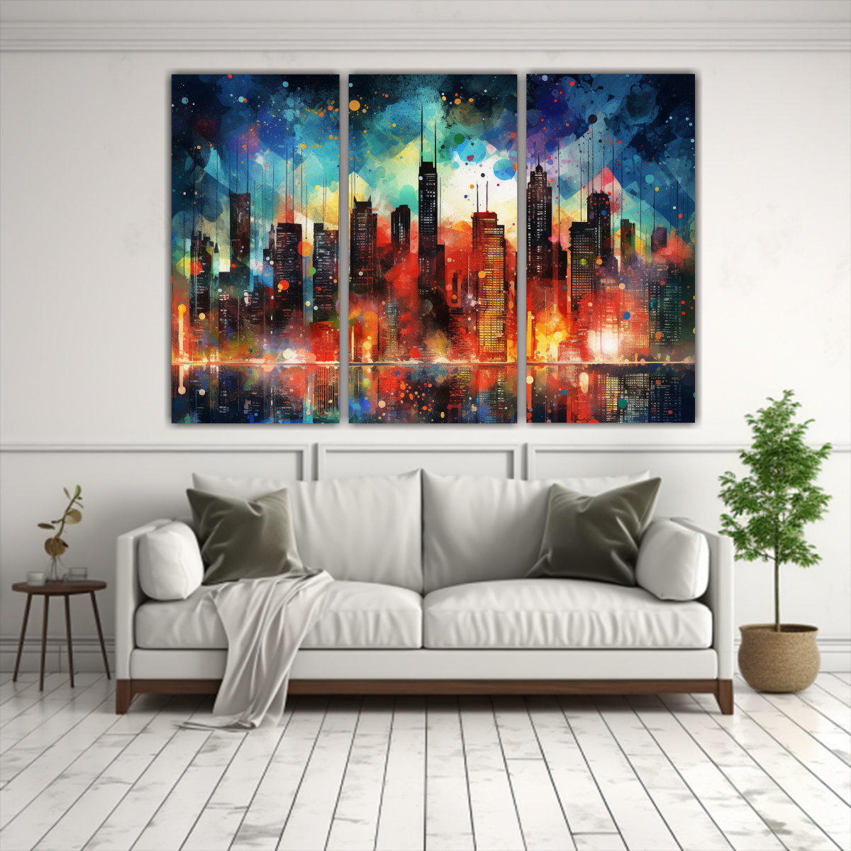 Coloca este cuadro en tu sala de estar para crear un ambiente urbano y moderno Combínalo con muebles en tonos neutros y accesorios en los colores del cuadro para un look sofisticado y contemporáneo