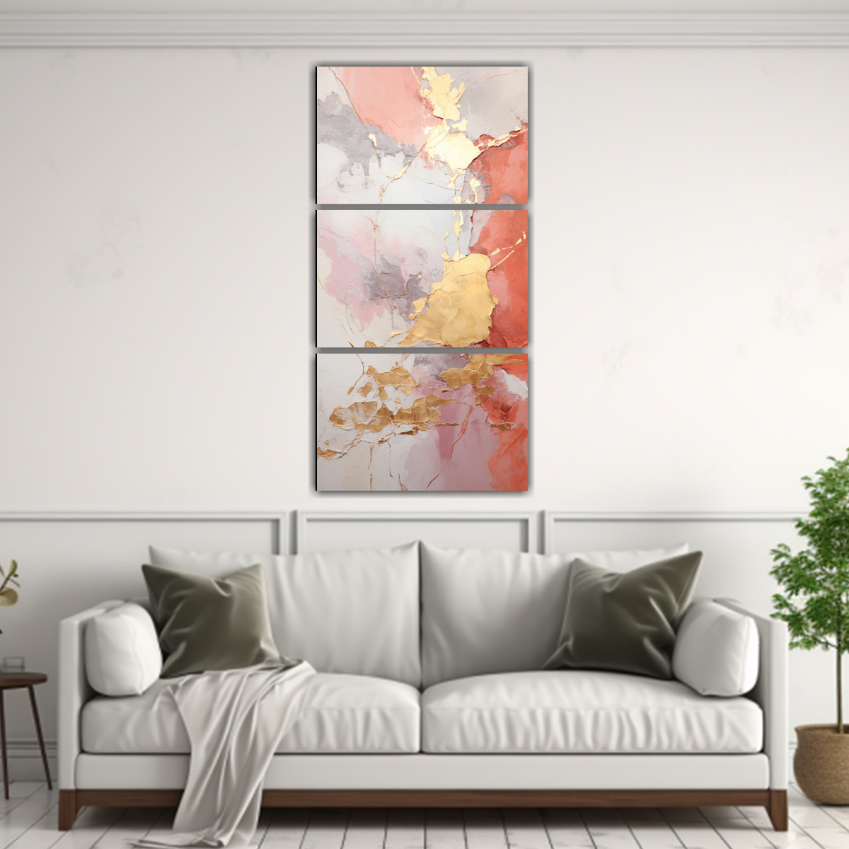 El cuadro abstracto Tres Artes Imagen Reflejo es perfecto para añadir estilo y sofisticación a cualquier ambiente Con su combinación de colores plateado, coral, carmesi, gris, lila, beige y dorado, este cuadro impresionará a todos con su diseño exclusivo Nuestros cuadros están impresos en tela de alta calidad y cuentan con bastidores de madera, lo que garantiza durabilidad y resistencia En DecoCuadros nos enorgullece ofrecer la mejor calidad del mercado a precios económicos Además, nuestras entregas son rápidas y gratuitas en Santiago, y realizamos envíos express a regiones No pierdas la oportunidad de tener este cuadro único que hará destacar tus espacios