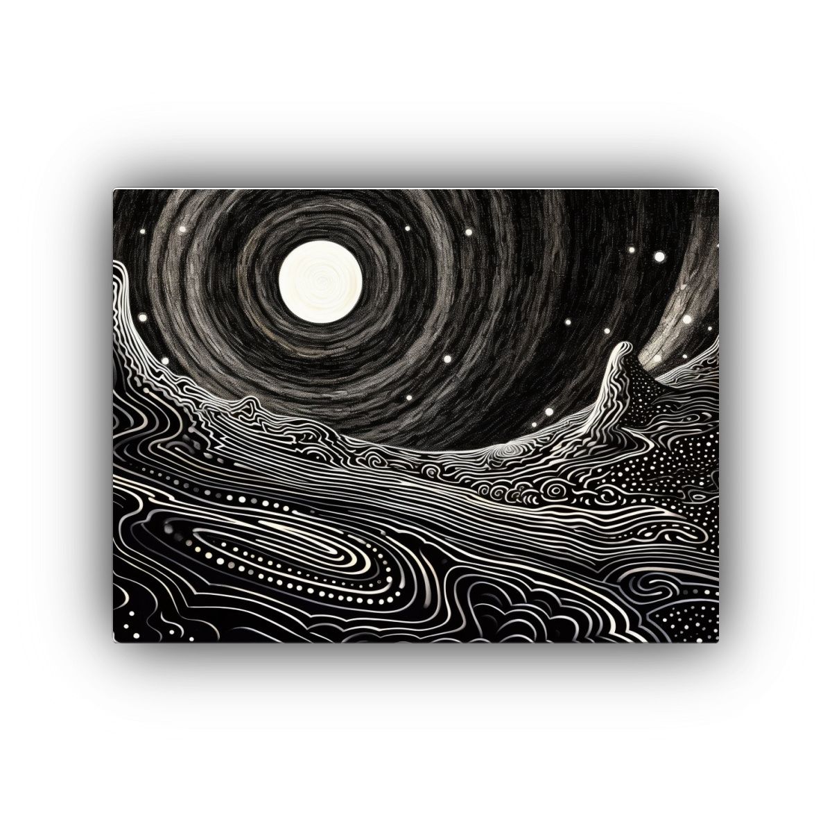 El cuadro ‘1 Cuadro Forma Urbano black on white monotone a cosmic nebulous winding’ destaca por su estilo urbano y astral, ideal para decorar cualquier espacio con elegancia y modernidad Atrévete a darle un toque único a tu hogar u oficina