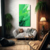 Este cuadro abstracto verde de líneas simétricas se verá espectacular en la sala de estar, especialmente colocado encima del sofá Su diseño minimalista y los tonos verdes y azules le darán a tu sala un ambiente fresco y relajante Complementa la decoración con cojines en tonos similares y plantas naturales para crear un espacio acogedor y lleno de vida