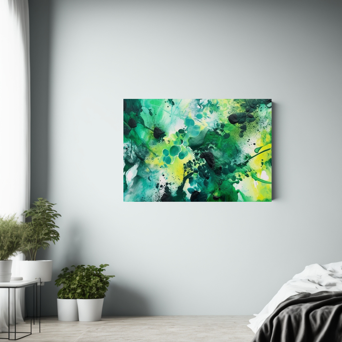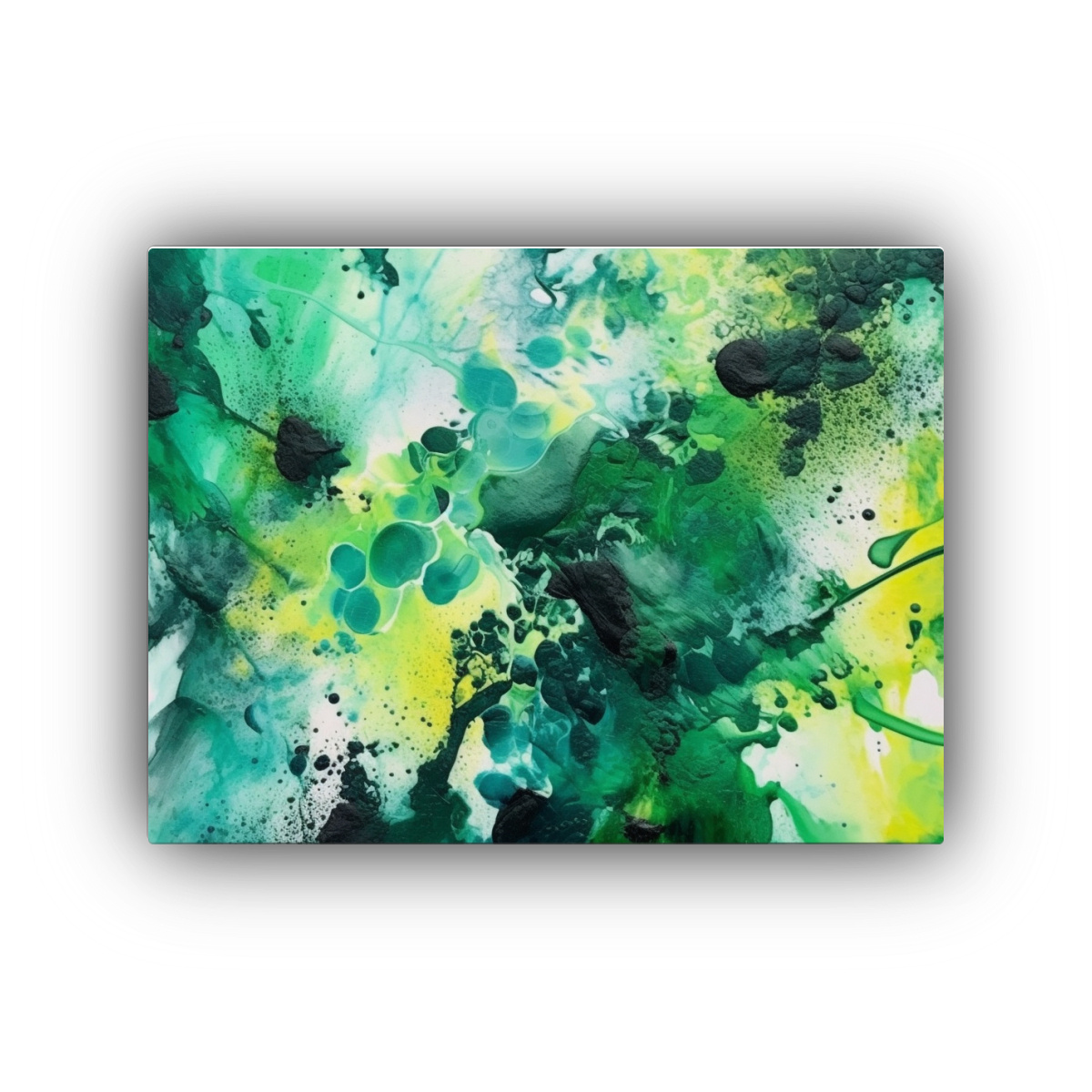 Añade un toque de creatividad a tu espacio de trabajo con este cuadro abstracto en tonos verdes y negros Ideal para oficinas modernas y sofisticadas Diseños exclusivos y entrega express a todo Chile