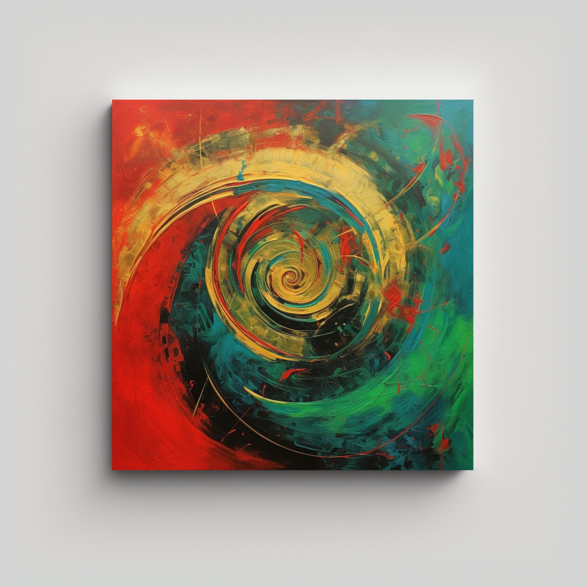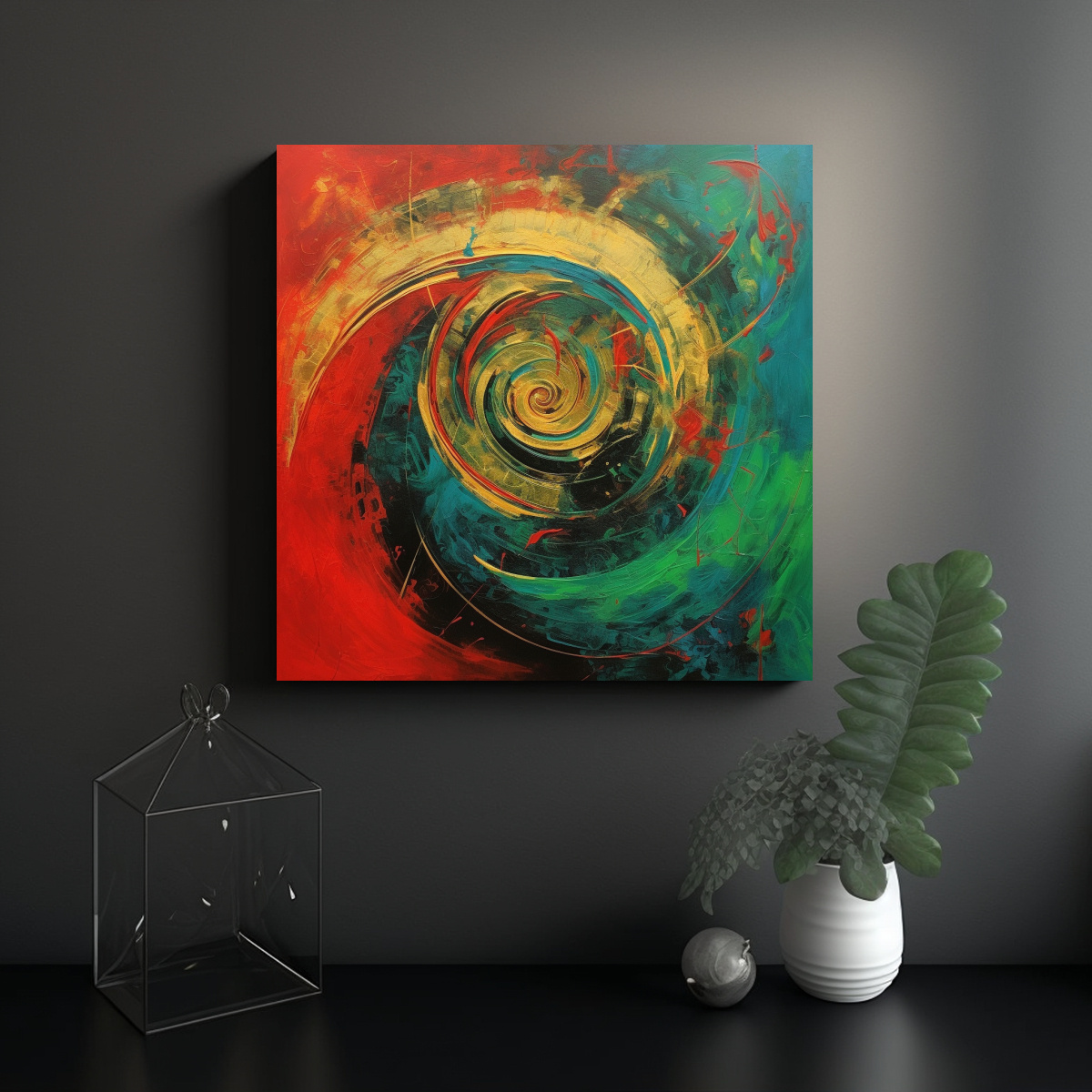 Renueva tu hogar con este cuadro conceptual de colores vibrantes como carmesí, azul marino grisáceo y verde azulado ¡Dale un toque de modernidad y exclusividad a tus espacios!