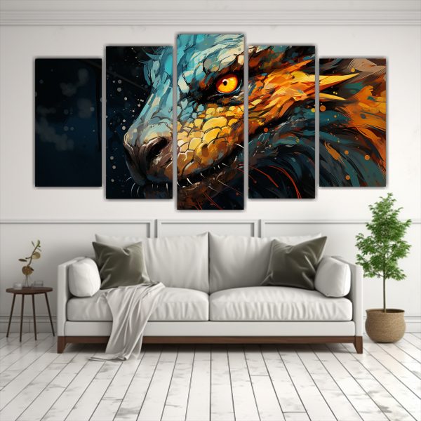 Sumérgete en la originalidad y estilo con este cuadro abstracto de dragón en tonos amarillo y azul Con entrega rápida y gratuita en Santiago y envíos express a regiones, DecoCuadros ofrece la mejor calidad a precios insuperables