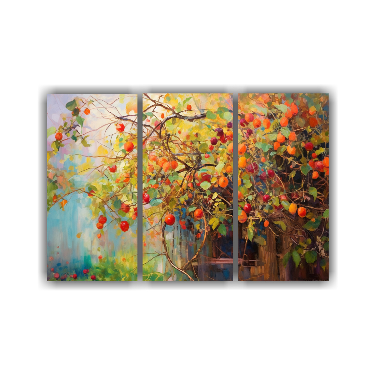 Este cuadro abstracto de árboles frutales combinará perfectamente en tu cocina o comedor, añadiendo un toque fresco y natural a tu decoración Colócalo junto a una mesa con frutas frescas para realzar su belleza y darle un ambiente acogedor a tu hogar