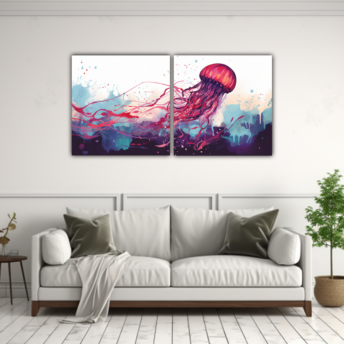 Renueva tu espacio con esta obra de arte única La vitalidad de la Medusa en colores acuáticos y burdeos pop art neo dará un toque moderno y elegante a tu hogar ¡Decora con estilo!