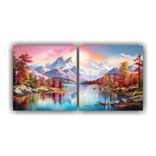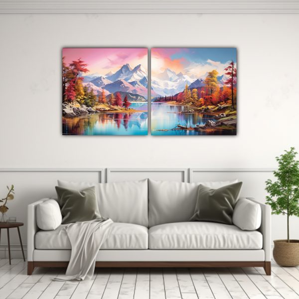 Añade vitalidad a tu espacio con este cuadro abstracto que representa la serenidad de las montañas junto a un lago en una mezcla de colores vibrantes y relajantes Calidad premium al mejor precio del mercado Envíos exprés a todas las regiones
