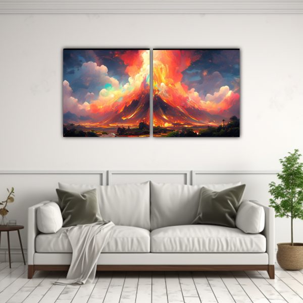 Renueva tu espacio con esta obra de arte que combina el misterio de un volcán, la belleza de un arcoíris y la frescura de los colores verdes Ideal para salas de estar, dormitorios o espacios creativos