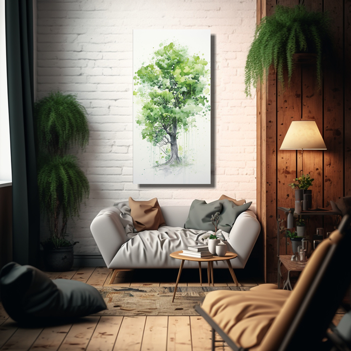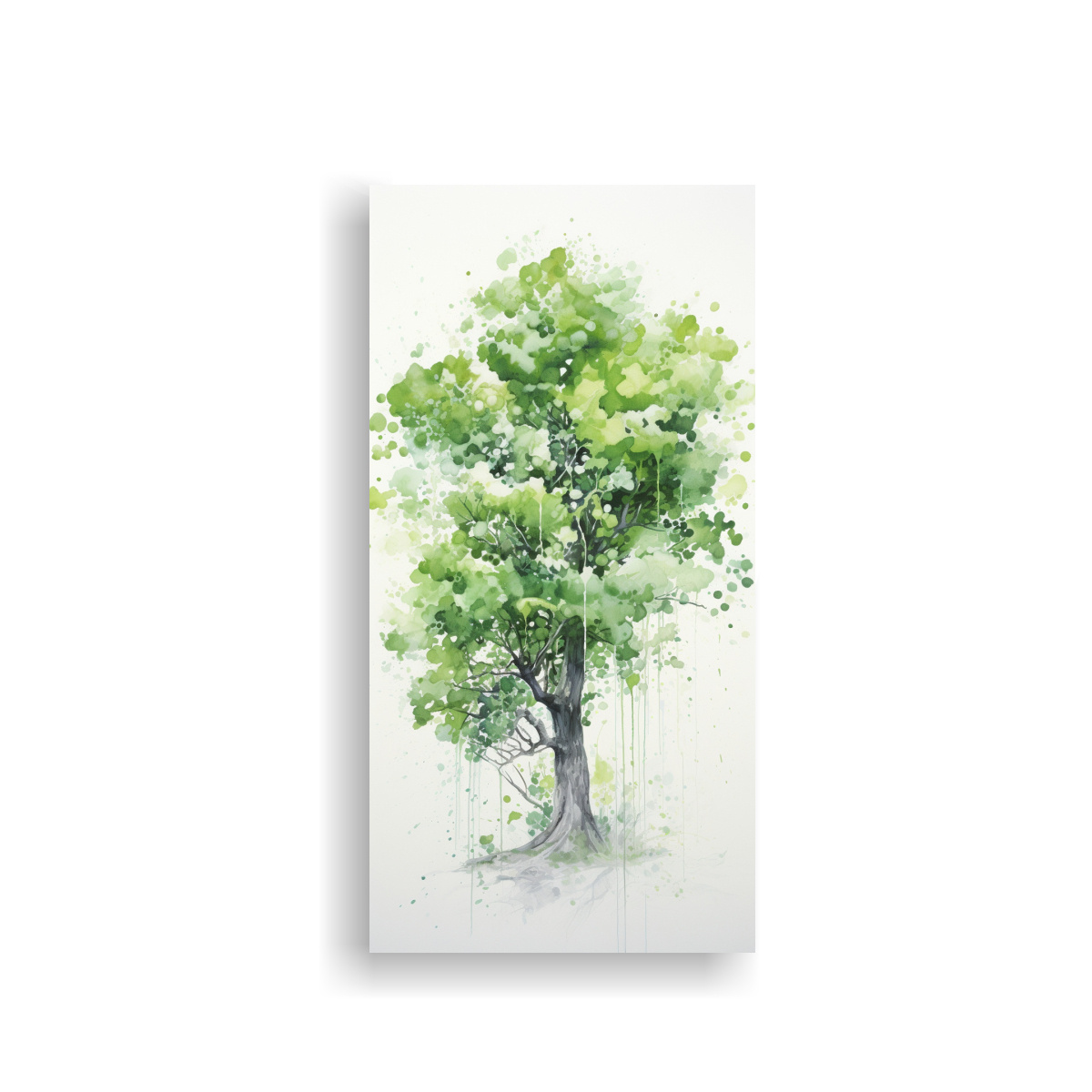 Cuadro Acuarela Abstracto árbol Higuera Verde Y Blanco Decoración De Pintura De Agua.