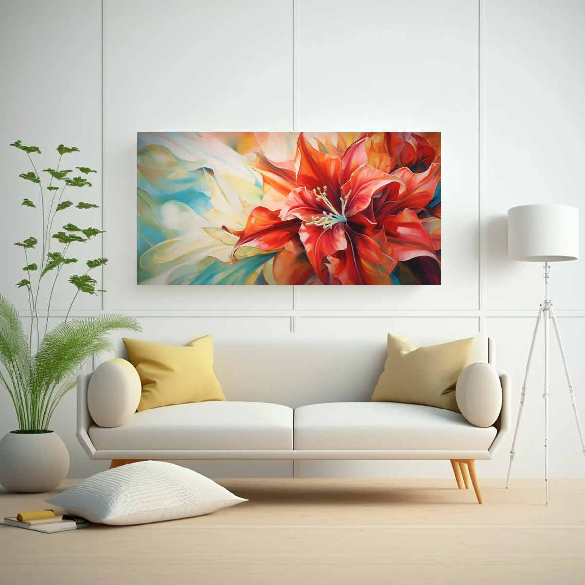 Cuadro Acuarela Abstracto Flores Amaryllis Equilibrio Visual.