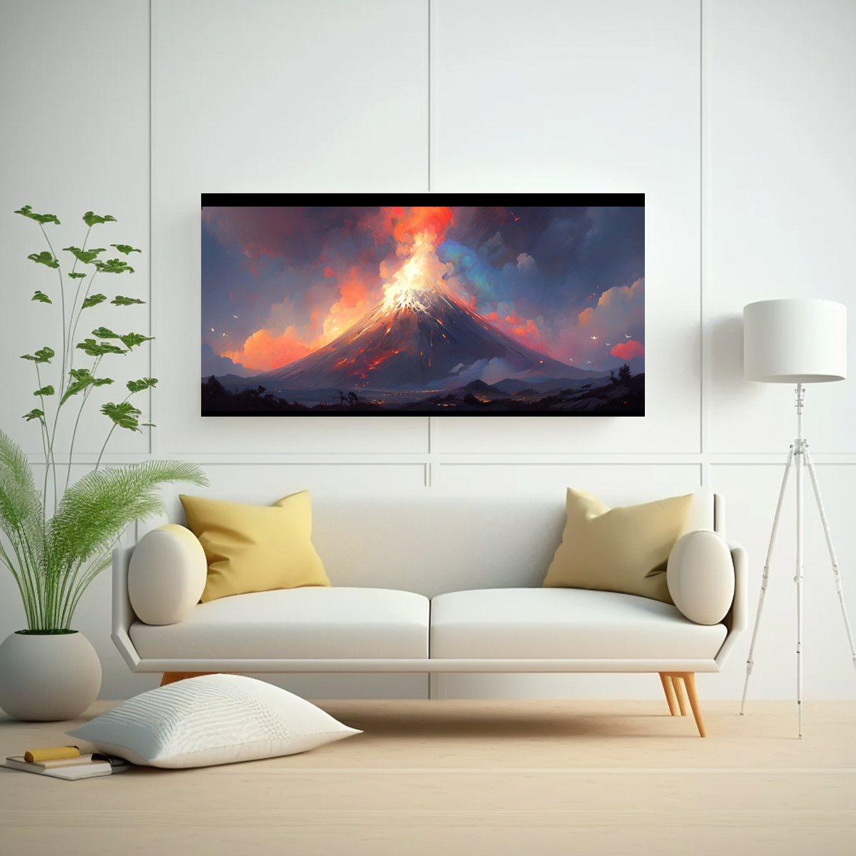 Atrévete a resaltar tu pared con este diseño exclusivo en acuarela El contraste del Volcán con arcoíris y colores blancos en Gris y Negro crea un ambiente único Encarga ahora y disfruta de la mejor calidad a precios accesibles