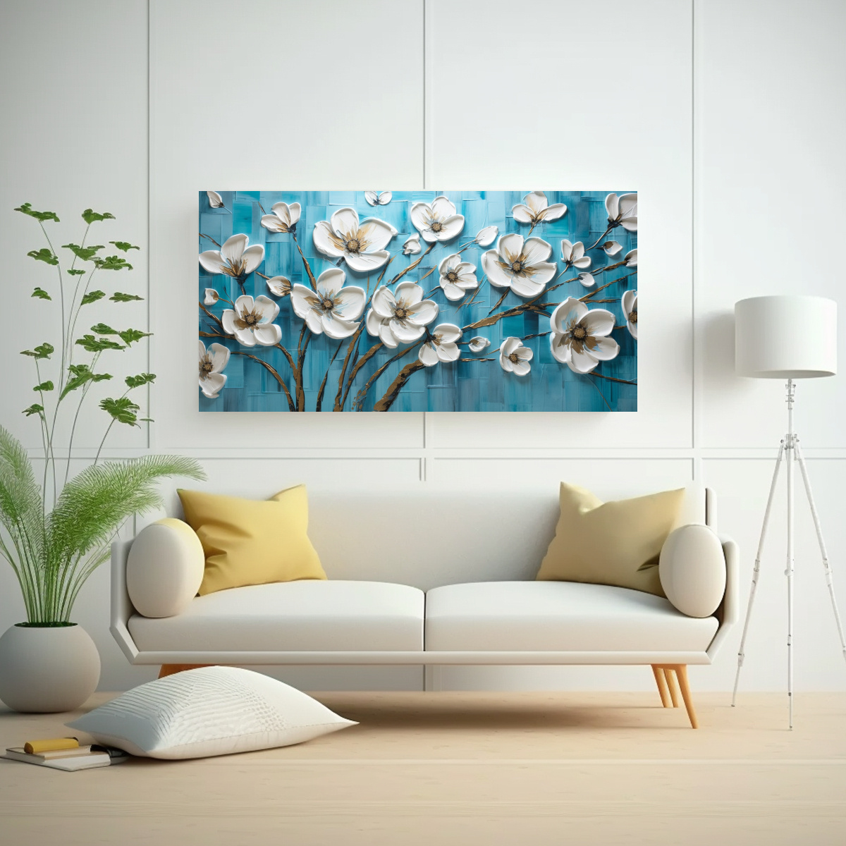 Cuadro Acuarela Elegancia En Bastidor Flor Turquesa Estilo