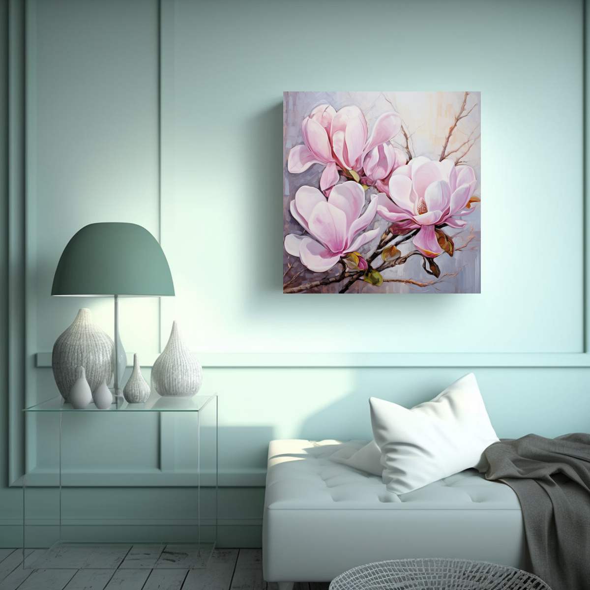 Este cuadro acuarela flores abstractas de magnolias es perfecto para decorar tu sala de estar o dormitorio Combínalo con muebles en tonos neutros, como gris claro o blanco, para crear un ambiente elegante y relajante También puedes colocarlo en un pasillo o recibidor para darle un toque de color y alegría a tu hogar ¡Atrévete a añadir este hermoso cuadro a tu decoración!