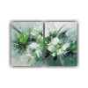Cuadro Acuarela Flores Alegres En Verde Y Azul: Decoración En Lienzo.