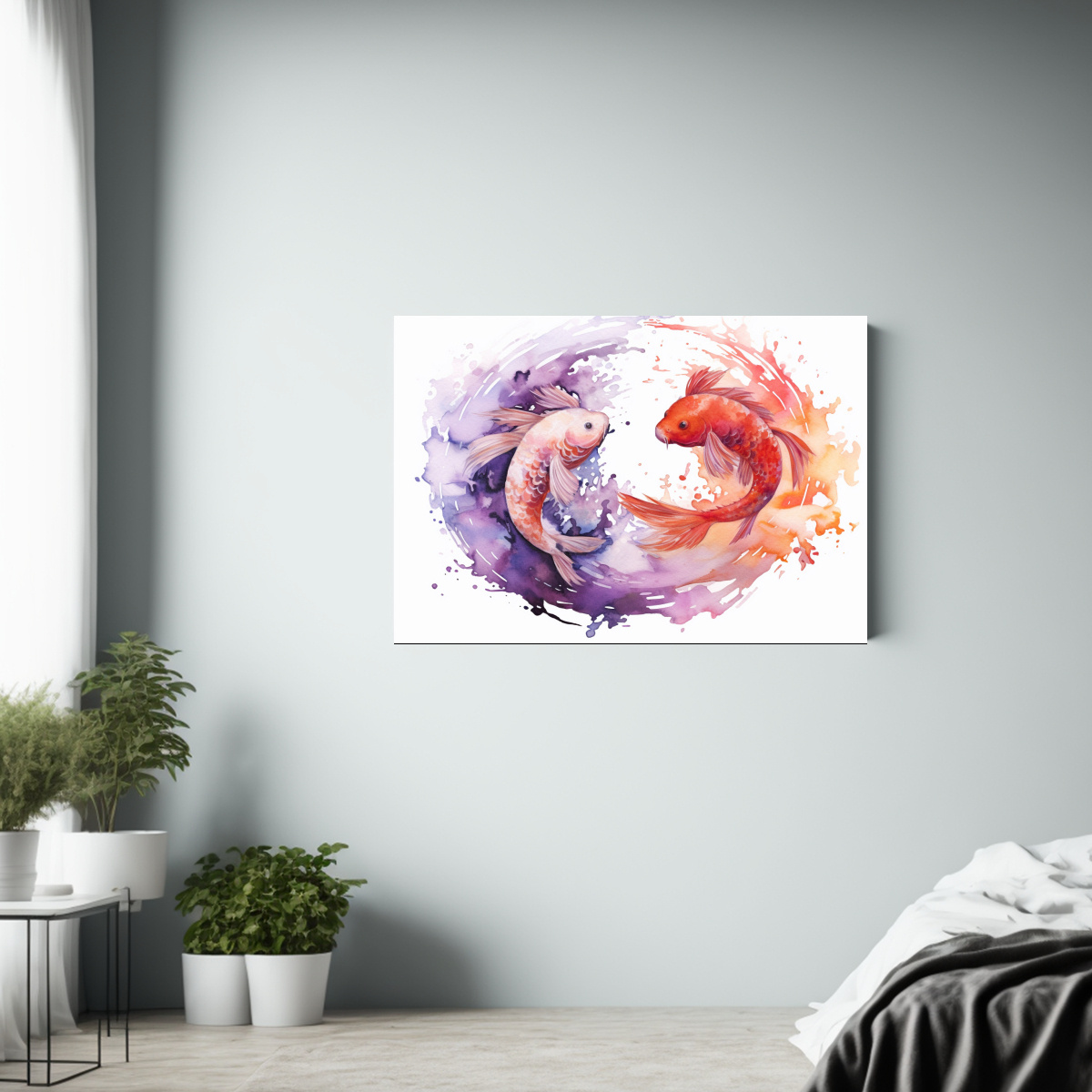 Cuadro Acuarela Koi Peces Nadando Círculo Ying.