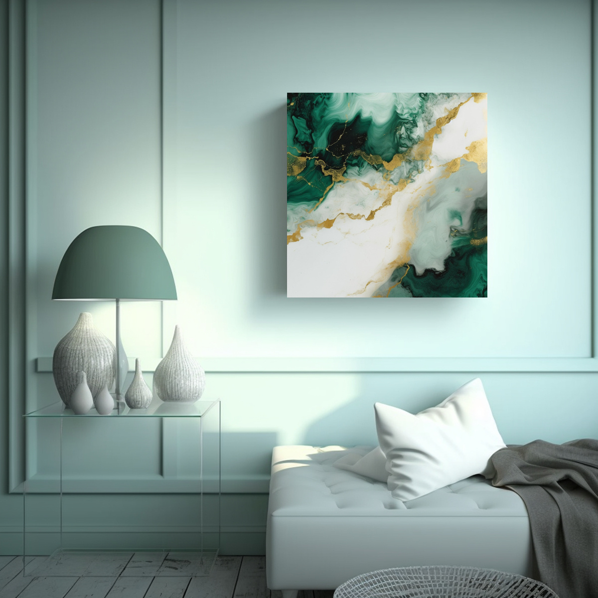 Este cuadro acuarela mármol textura blanco verde oro 8K es perfecto para decorar cualquier espacio con estilo y elegancia Te recomendamos colocarlo en tu sala de estar o en el recibidor, ya que sus colores Azul Marino grisaceo, Plateado, Gris, Chocolate y Menta se adaptan fácilmente a diferentes estilos de decoración Combínalo con muebles en tonos neutros y elementos dorados para crear un ambiente sofisticado y moderno ¡Atrévete a darle un toque de distinción a tus espacios con este cuadro exclusivo de DecoCuadros!