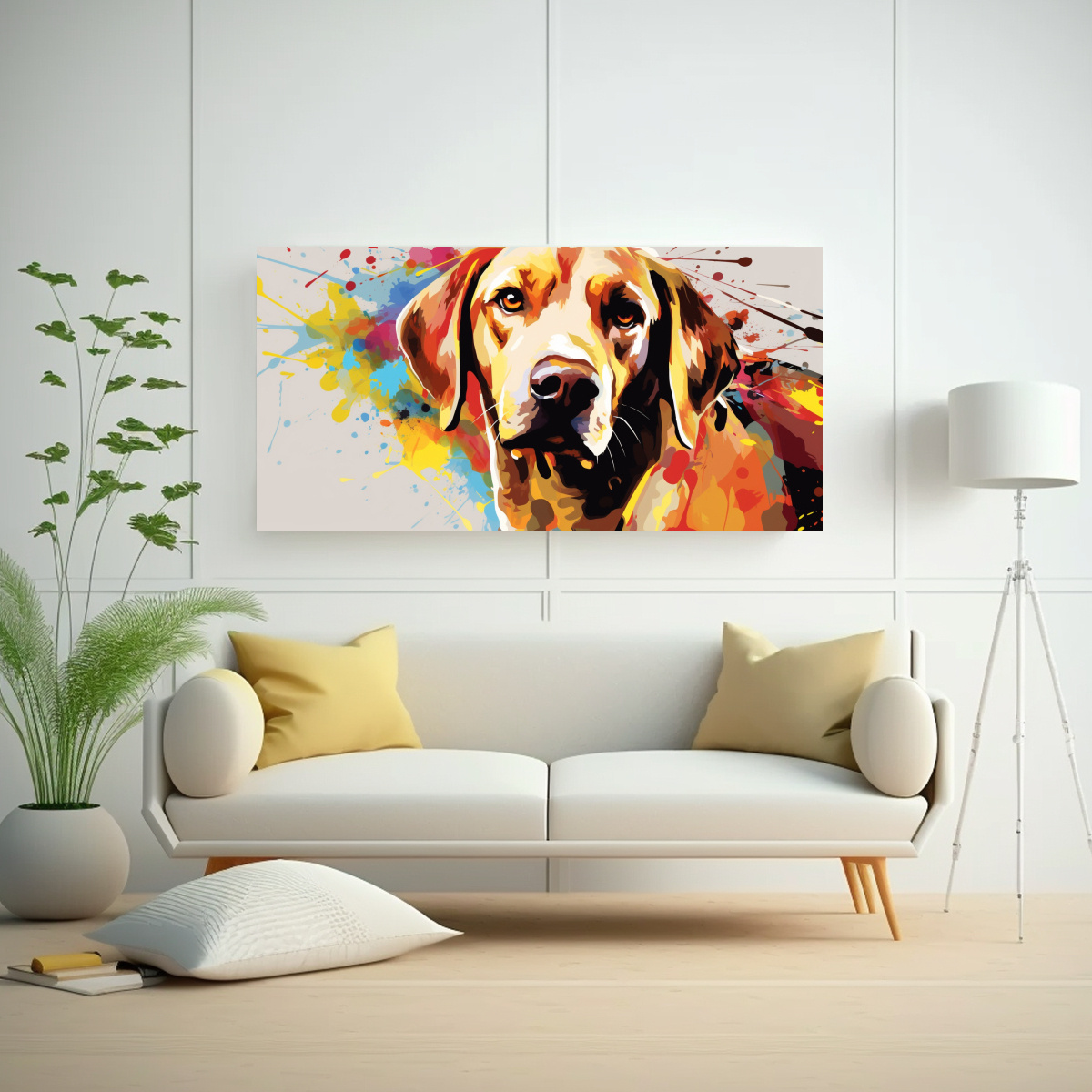 Lienzo acuarela exuberante de una mascota en colores vibrantes y marrones, perfecto para añadir un toque moderno y alegre a tu hogar Envíos gratuitos en Santiago y rápidos a regiones Aprovecha la calidad y exclusividad de DecoCuadros