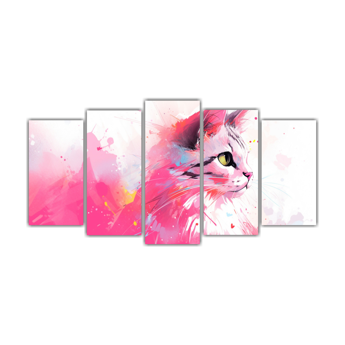 Cuadro Acuarela Naturaleza Viva Con Mascota En Colores Vibrantes Y Rosa Arte Pop Neo.