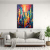 Este cuadro acuarela rectangular Abstract Cityscape es perfecto para decorar tu sala de estar Combínalo con muebles en tonos neutros como blanco, gris o beige para crear un contraste elegante También puedes colocarlo en el dormitorio, creando un ambiente relajante y sofisticado ¡Deja volar tu imaginación y dale un toque de arte a tu hogar con este hermoso cuadro!
