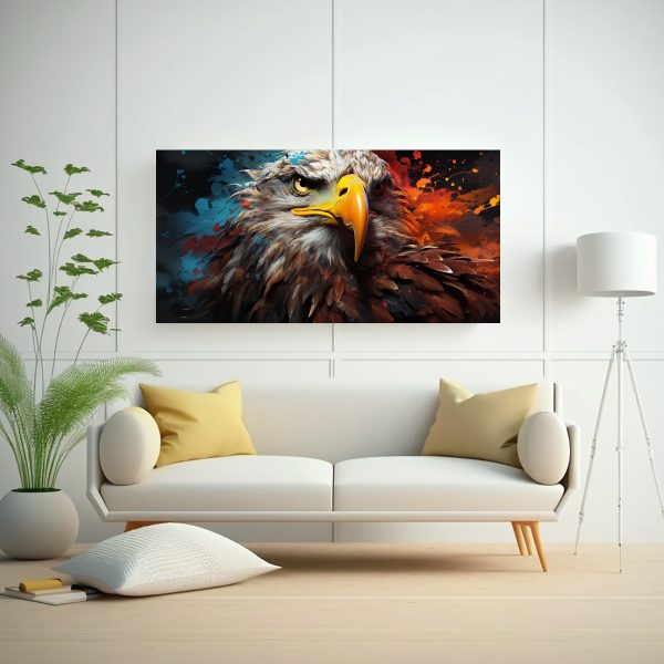 Coloca este Cuadro Alegre con Águila en Estilo Acuarela Colorida en tu sala de estar junto a muebles en tonos neutros como beige o gris claro para resaltar su vibrante paleta de colores ¡Crearás un ambiente acogedor y lleno de energía positiva!