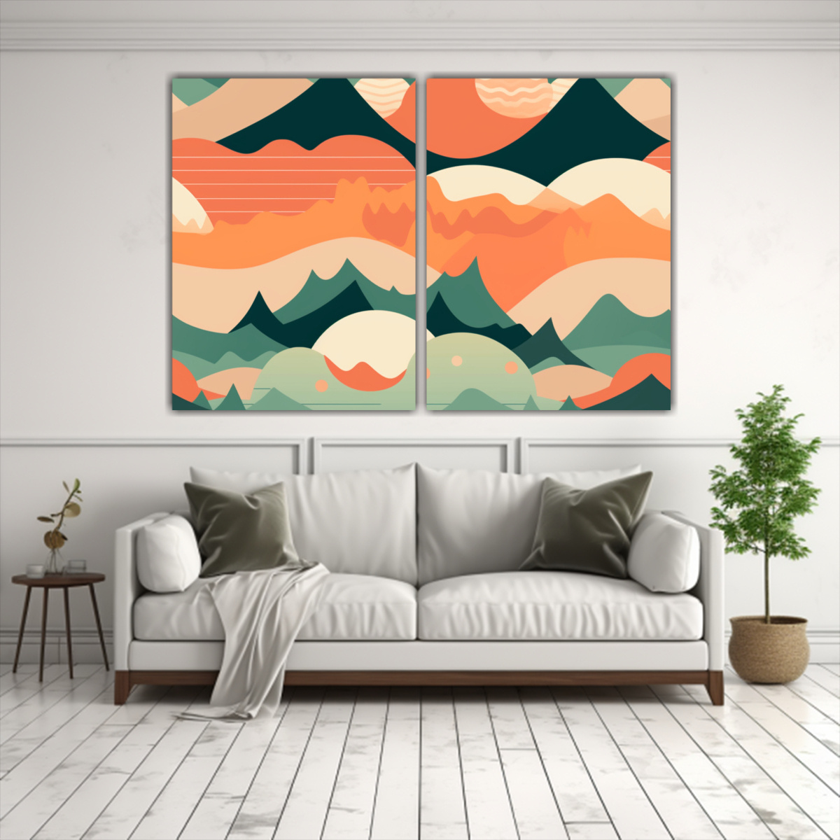 Adorna tu sala de estar con el set de 2 artes acuarela Poder mountain landscape lino cut nature eco en tonos Plateado y Gris Calidad premium y precios accesibles en DecoCuadros Envíos express a regiones disponibles
