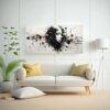 Este cuadro Arte Gráfico Abstracto en Negro es perfecto para decorar tu sala de estar Puedes colocarlo sobre un sofá de color neutro para que resalte, o en una pared de tonos claros para crear un contraste Combínalo con cojines y cortinas en tonos plateados o dorados para lograr una decoración elegante y sofisticada