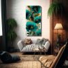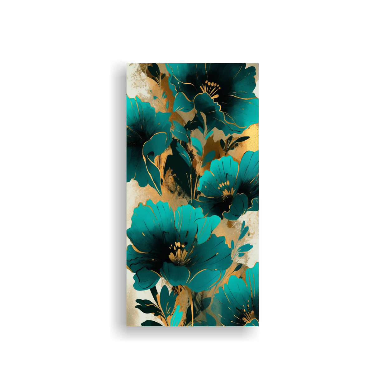 Cuadro Arte Gráfico Turquesa Y Dorado, Líneas Finas, Atmosfera Neonoir, Estilo Estético