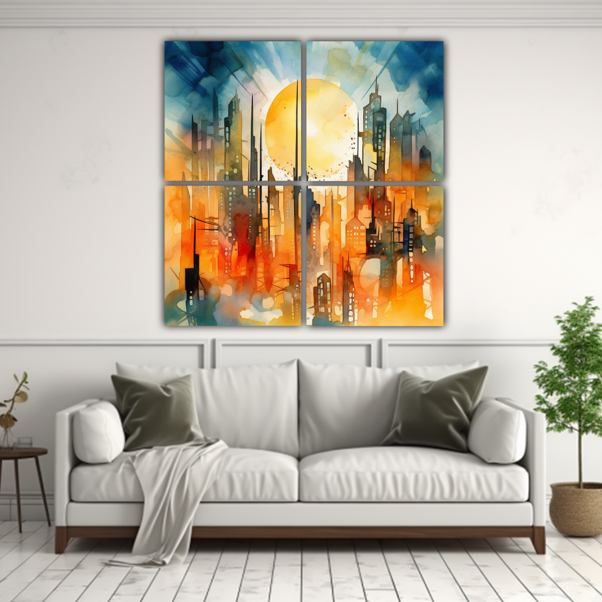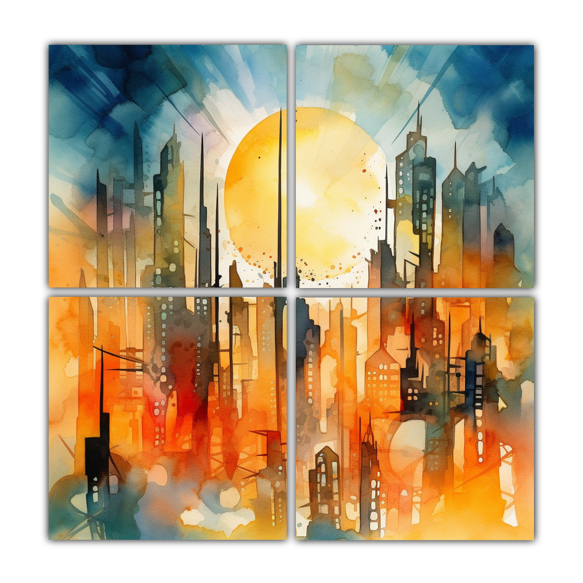 Cuadro Arte Pared Abstracto Futurista Ciudad Agua