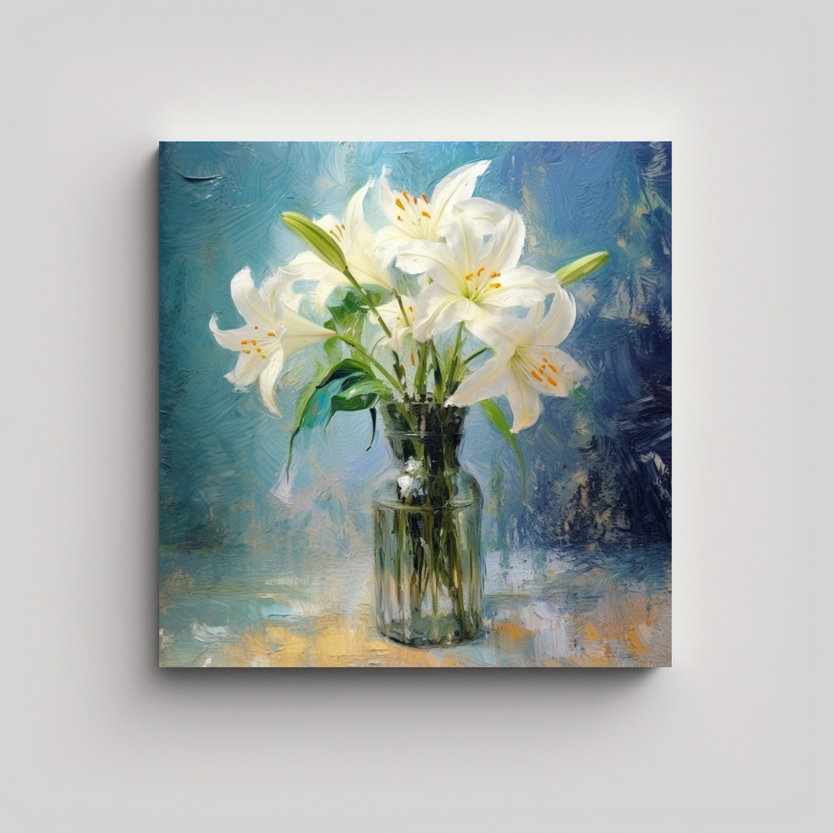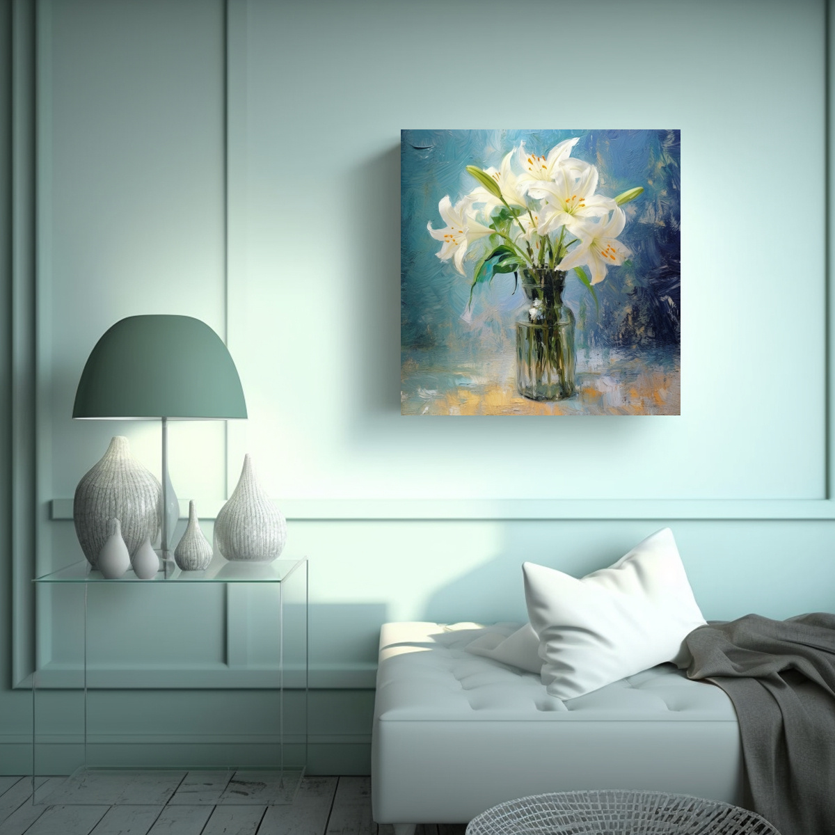 Cuadro Artesanal De Líneas Finas: Lirios Blancos Al Estilo Monet