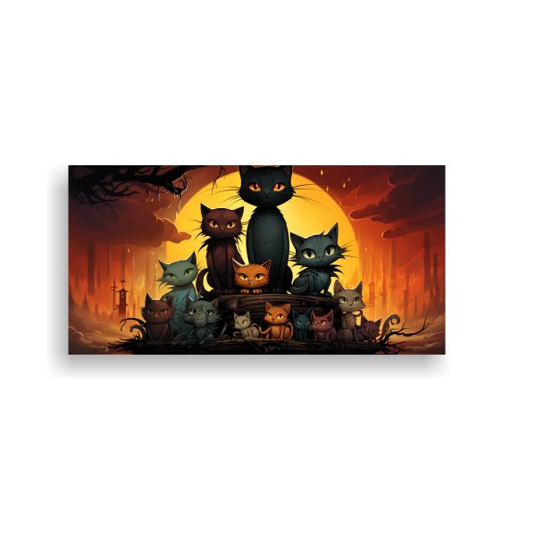Cuadro Artesanal Horizontal Gatos Negros En Pila Mirando Hacia Adelante