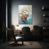 Coloca este cuadro en la pared del baño principal para crear un punto focal y combínalo con toallas y accesorios en tonos blanco, beige y turquesa para lograr una decoración armoniosa Asegúrate de ubicarlo en un lugar donde pueda ser apreciado por todos, como encima del lavamanos o en frente de la bañera