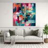 Puedes colocar este cuadro en tu sala de estar para crear un punto focal y complementarlo con cojines en tonos lila, turquesa y coral También puedes colocarlo en tu dormitorio para darle un toque de color a tu espacio de descanso ¡Deja volar tu imaginación y encuentra el lugar perfecto para este cuadro único!