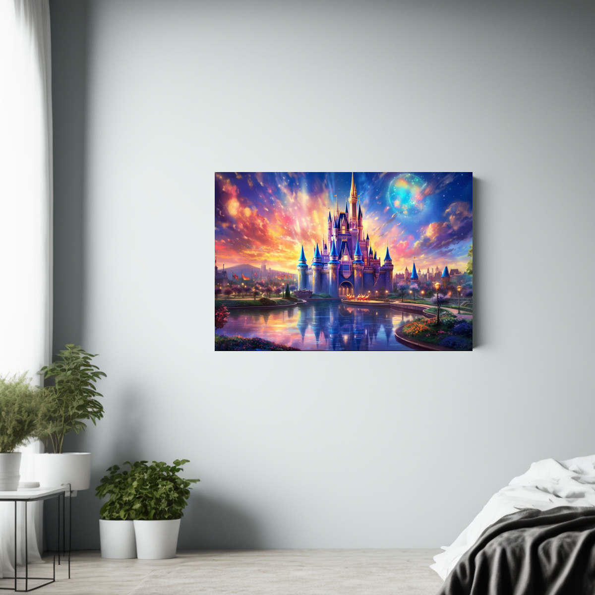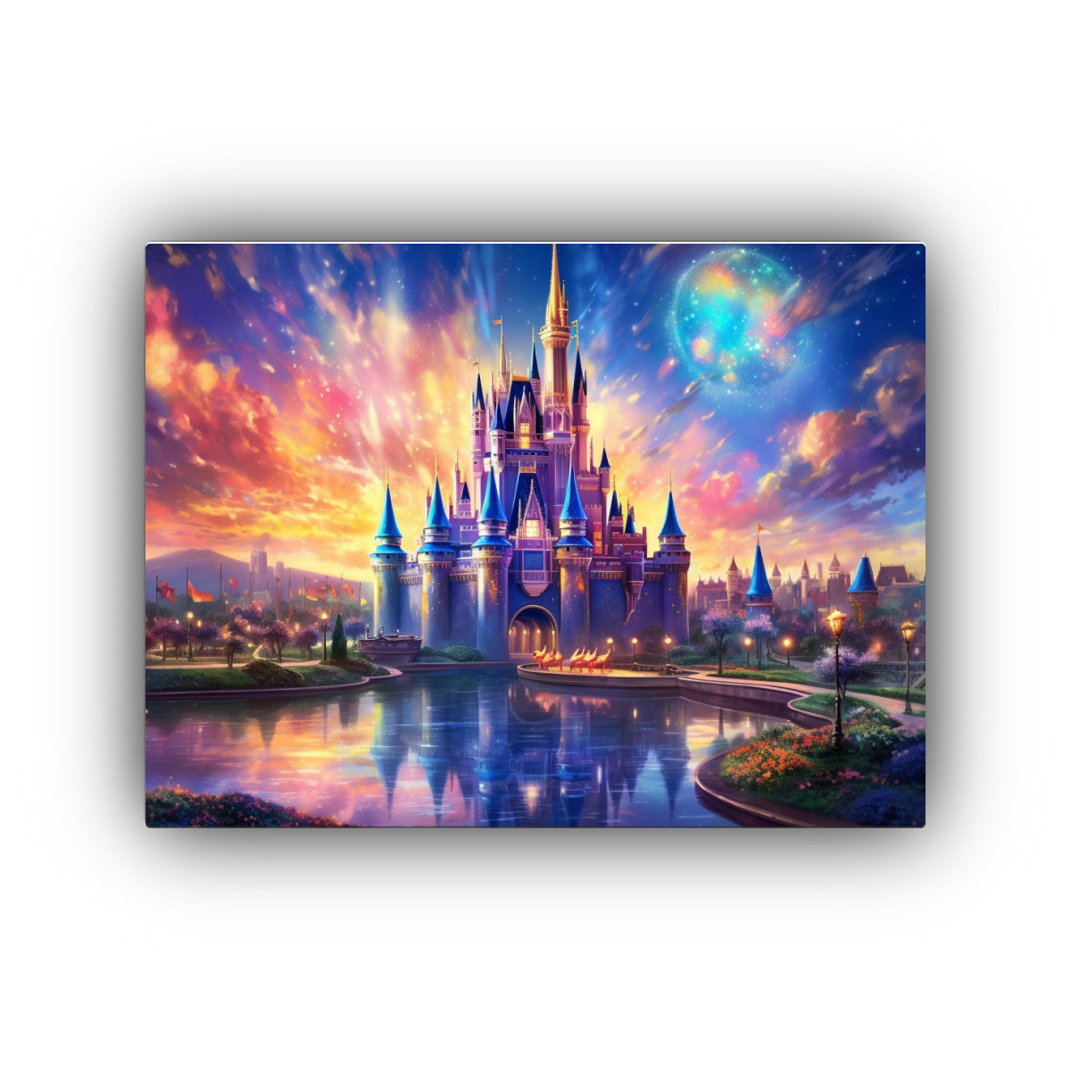 Cuadro Bastidor Moderno Figuras Escena Disney Castillo Colorido