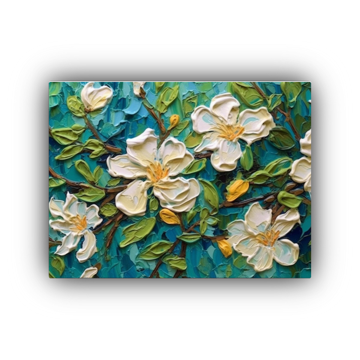 Cuadro Brillante Con Amplias Pinceladas De Patrón De Jazmín Para Decorar