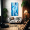 Este cuadro Calidos Interiores Geometría abstracta en océano es perfecto para darle vida y frescura a tu sala de estar Colócalo sobre un sofá de color blanco o neutro, y combínalo con cojines y cortinas en tonos similares También puedes añadir elementos decorativos en dorado para resaltar los detalles de la obra ¡Crearás un ambiente único y sofisticado!