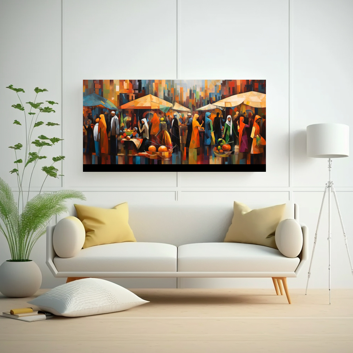 Cuadro Calidos Lineales: Escena Vibrante De Mercado