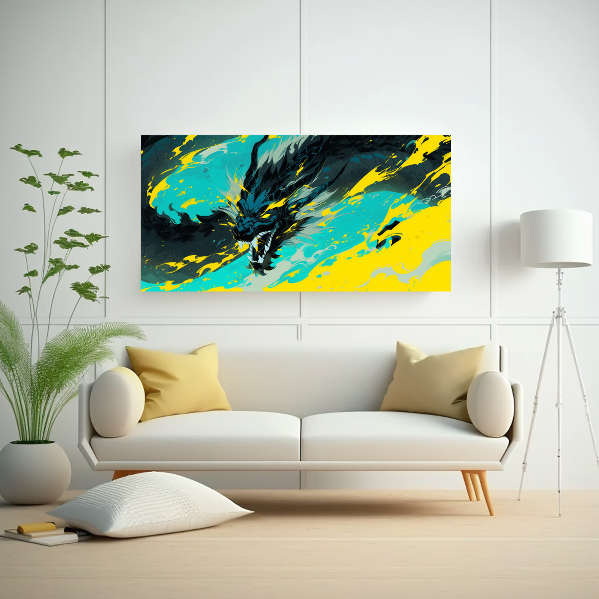 Cuadro Calidos Relieve Dragon Amarillo Y Turquesa Atmosfera Neonoir