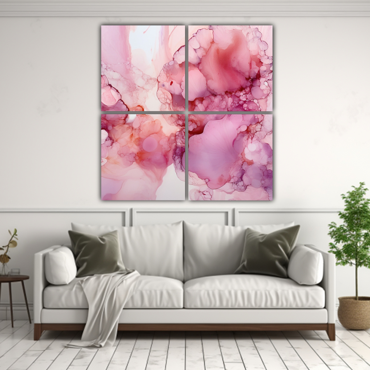 Cuadro Canvas Cuatro Cuadrado Pop Art Fondo De Tinta De Alcohol Rosa Suave Sobre Fondo Blanco