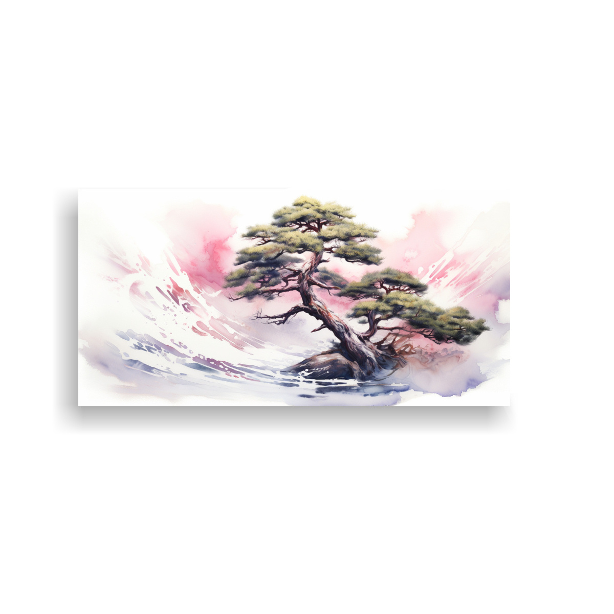 Cuadro Canvas Fantasía Pino Bonsái Blanco Y Rosa Pintura Abstracta