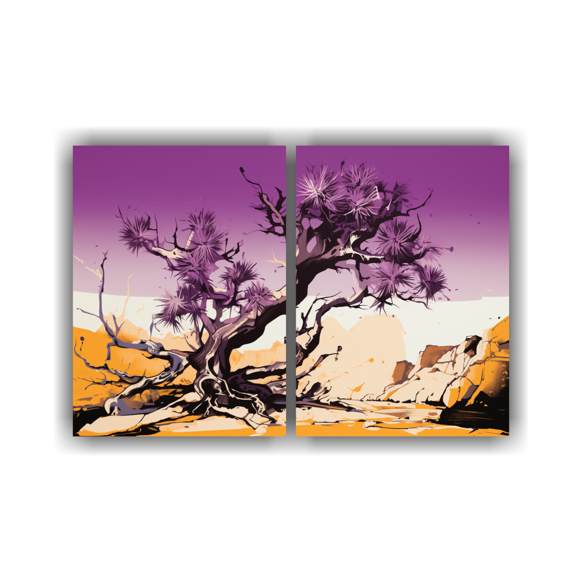 Este Cuadro Canvas Impreso en Joshua Tree Púrpura y Dorado sería ideal para destacar en la pared principal de tu comedor, creando un ambiente sofisticado y moderno Combínalo con muebles en tonos neutros para resaltar su elegancia