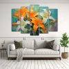 Cuadro Canvas Moderno Simétrico Flores Verde Y Naranja En Tonalidades En Decoración