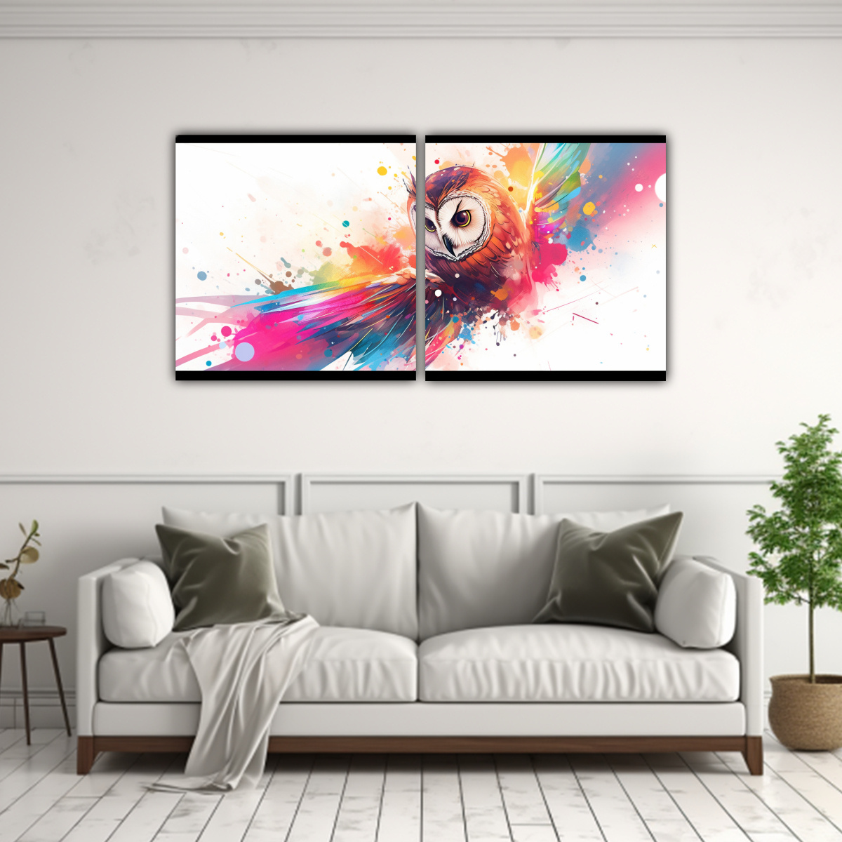 Este Cuadro Canvas Búho Arcoíris Vitalidad quedará perfecto en una pared blanca para resaltar sus colores Combínalo con muebles en tonos neutros para crear un contraste elegante y moderno en tu sala de estar o dormitorio