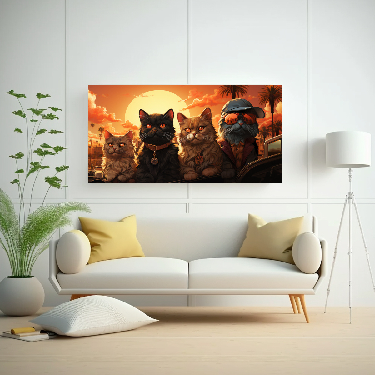 Este cuadro clásico de gatitos de California en estilo cartoon retro quedaría perfecto en la sala de estar, creando un ambiente alegre y juvenil Combínalo con cojines en tonos amarillo claro y gris para resaltar los colores del cuadro y lograr una decoración armoniosa