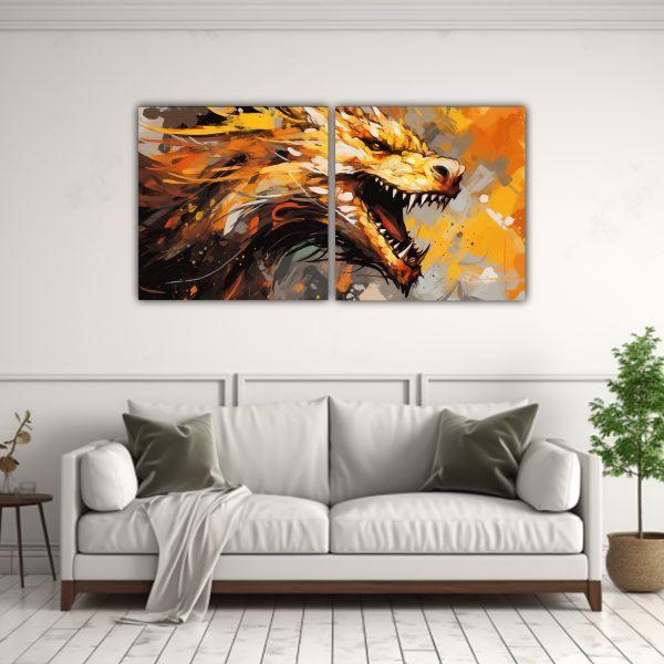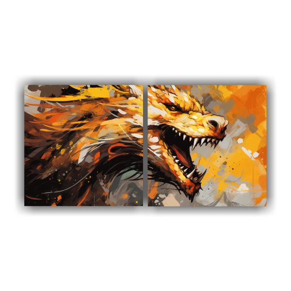 Cuadro Clásica: Dragón Amarillo Y Naranja En Atmósfera Neonoir