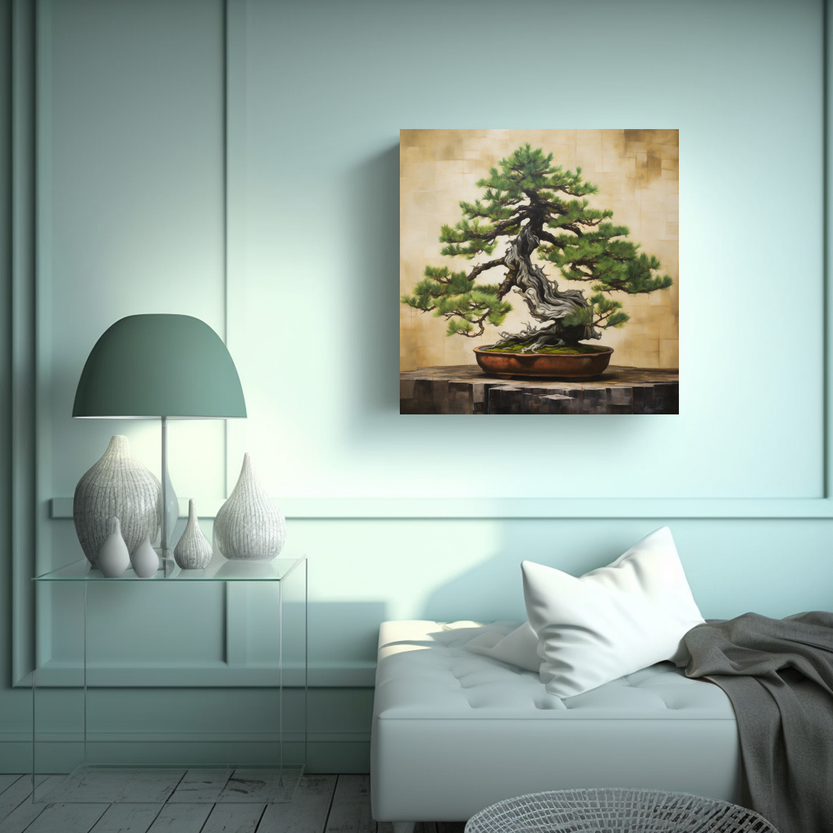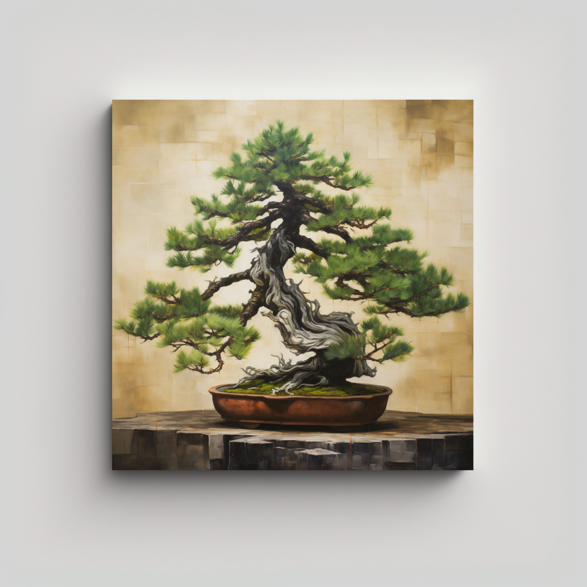 Cuadro Comedor Pino Árbol Bonsái Pintura Abstracta