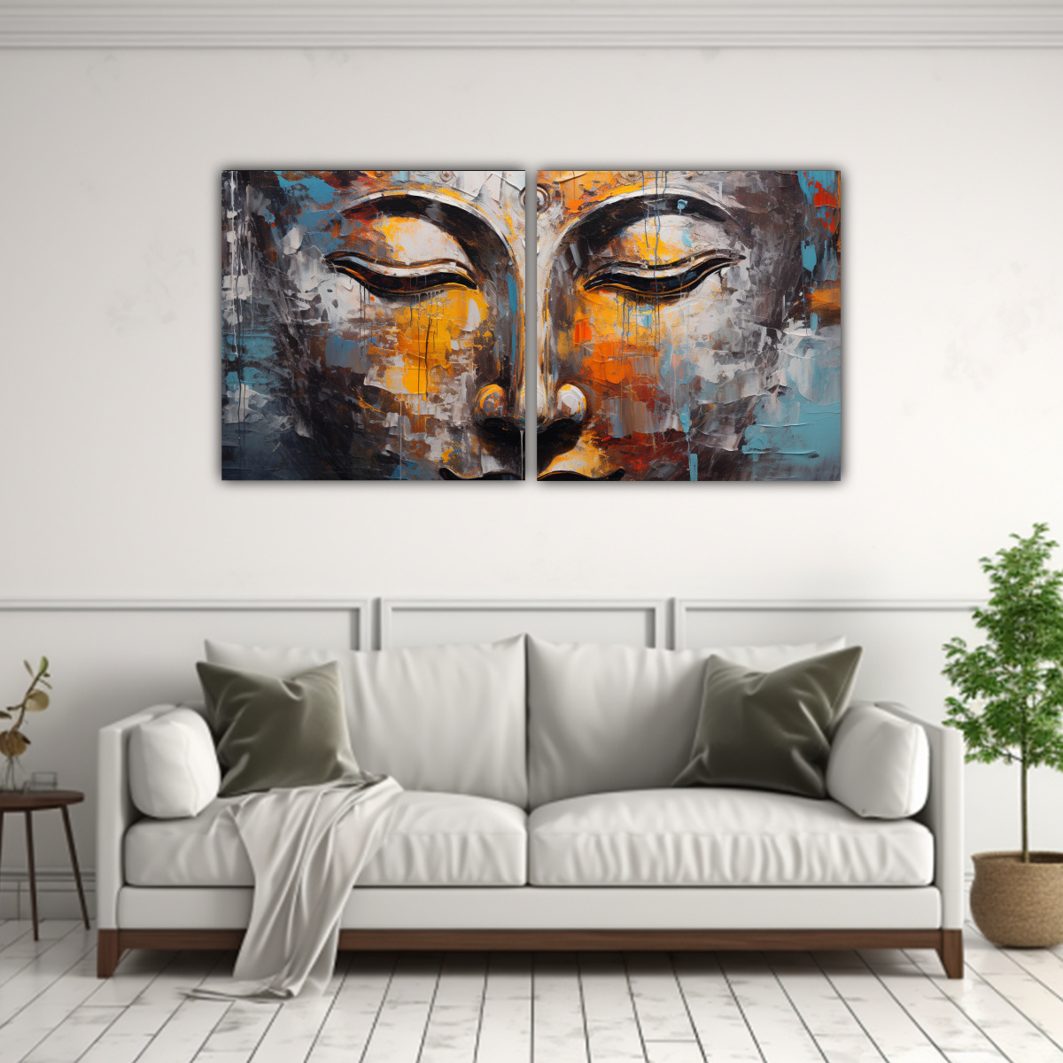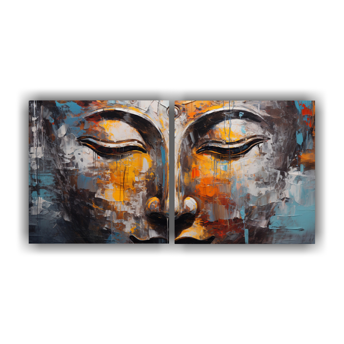 Cuadro Composición Expresividad Buddha En Estilo Abstracto Plateado Y Vibrante