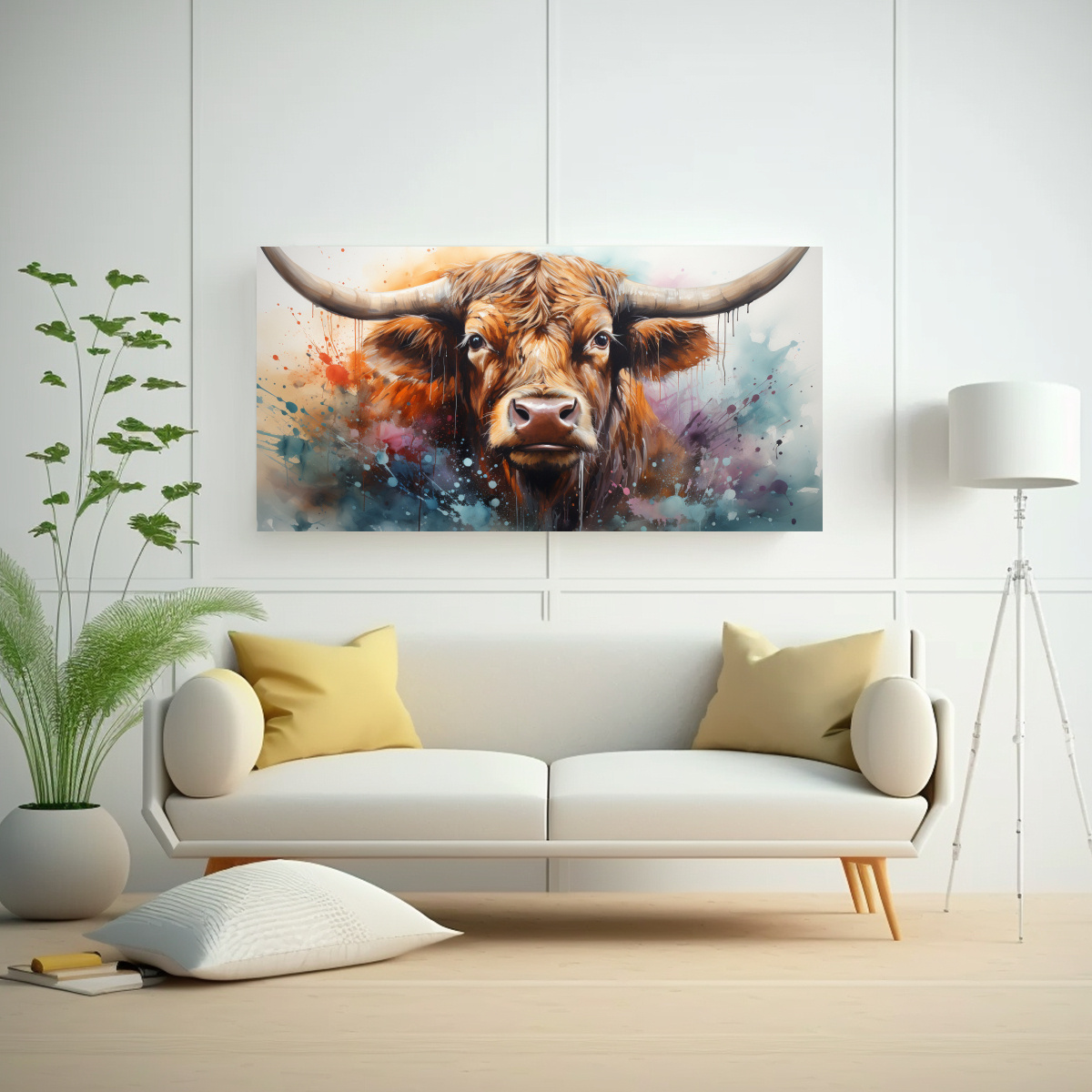 Cuadro Composición Mágico Vaca Longhorn Acuarelas Coloridas Arte Pintura