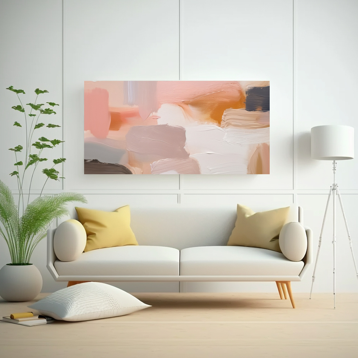 Este cuadro se vería espectacular en una sala de estar contemporánea, creando un ambiente sofisticado y moderno Colócalo sobre un sofá beige para resaltar los tonos neutros y rosados, aportando calidez y estilo a tu espacio