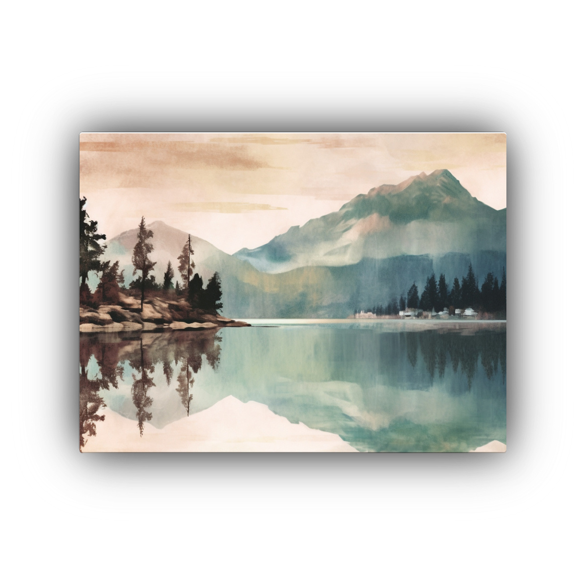 Cuadro Composicion Paisaje Boho Montaña Lago Arte Alta Resolución