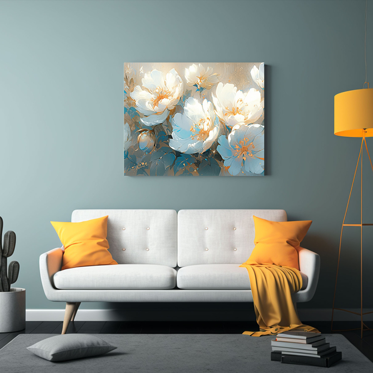 Este Cuadro Composición Regalo Turquesa y Oro con Flores en lienzo es ideal para decorar tu sala de estar o dormitorio Combínalo con muebles en tonos neutros como blanco o beige, y añade cojines en colores turquesa o dorados para lograr un ambiente elegante y sofisticado